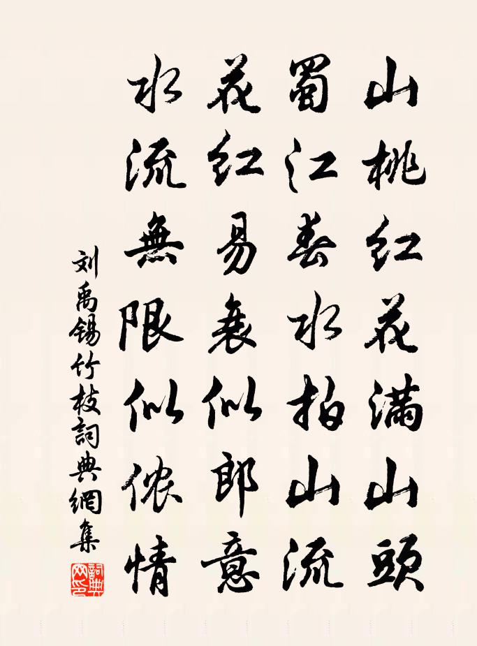 山桃红花满山头,蜀江春水拍山流。花红易衰似郎意,水流无限似侬情。