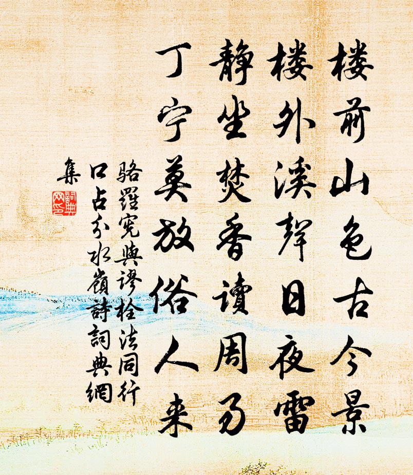 楼前山色古今景,楼外溪声日夜雷。静坐焚香读周易,丁宁莫放俗人来。