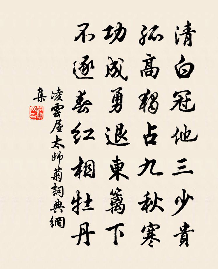 清白冠他三少贵,孤高独占九秋寒。功成勇退东篱下,不逐春红相牡丹。